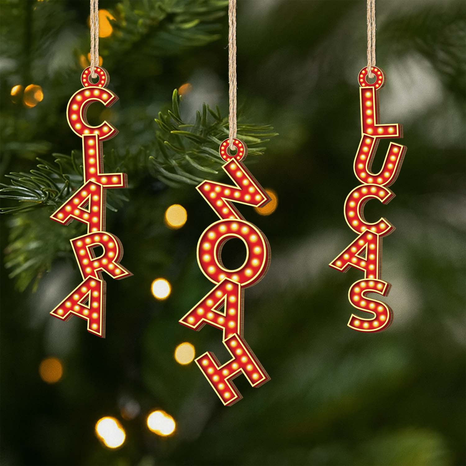 [3D-Druck-Effekt] Broadway Alphabet - Personalisierte 1-Schicht-Holz-Ornamente Weihnachten Mit Namen