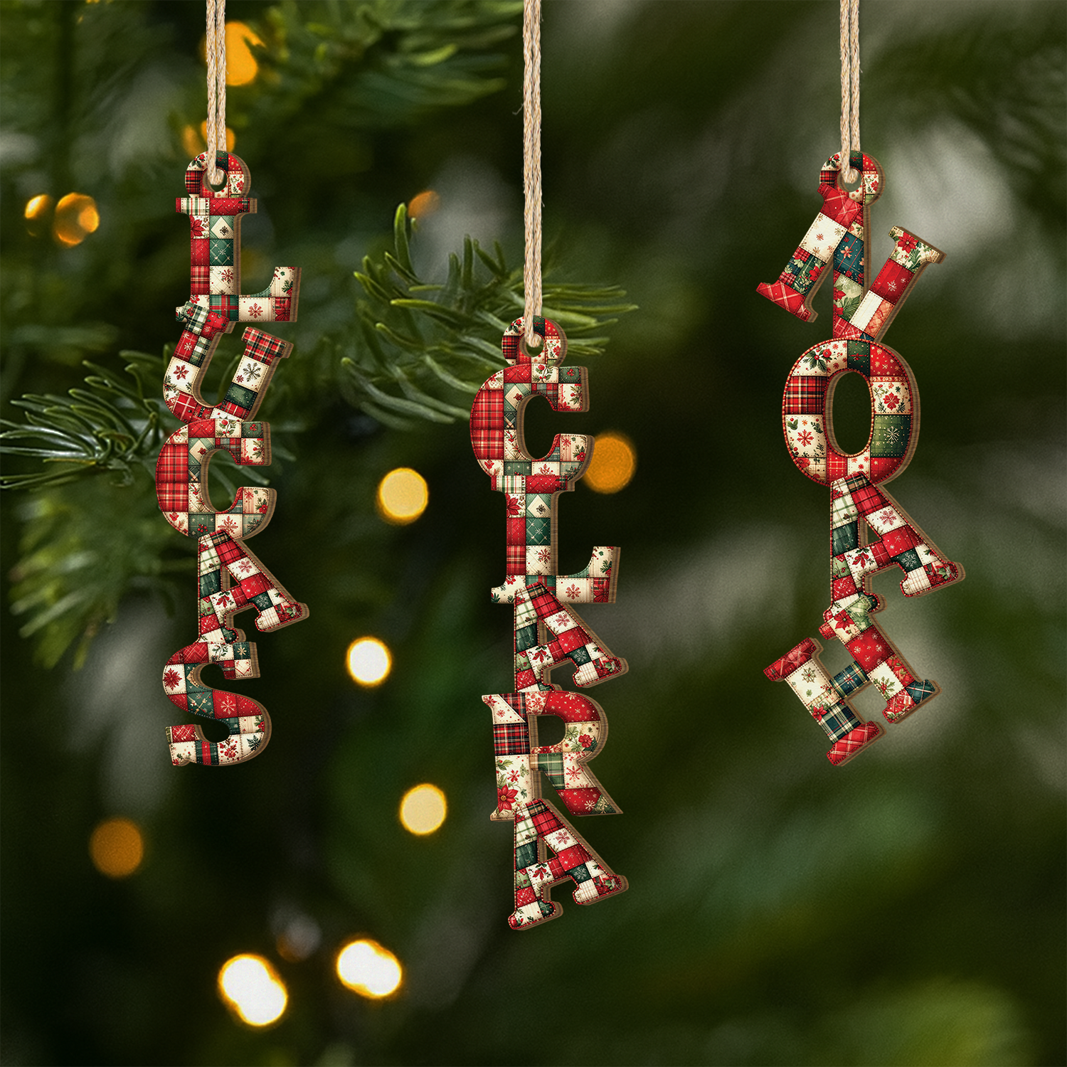 [3D-Druck-Effekt] Buchstaben Patchwork Weihnachten - Personalisierte 1-Schicht-Holz-Ornamente Mit Namen