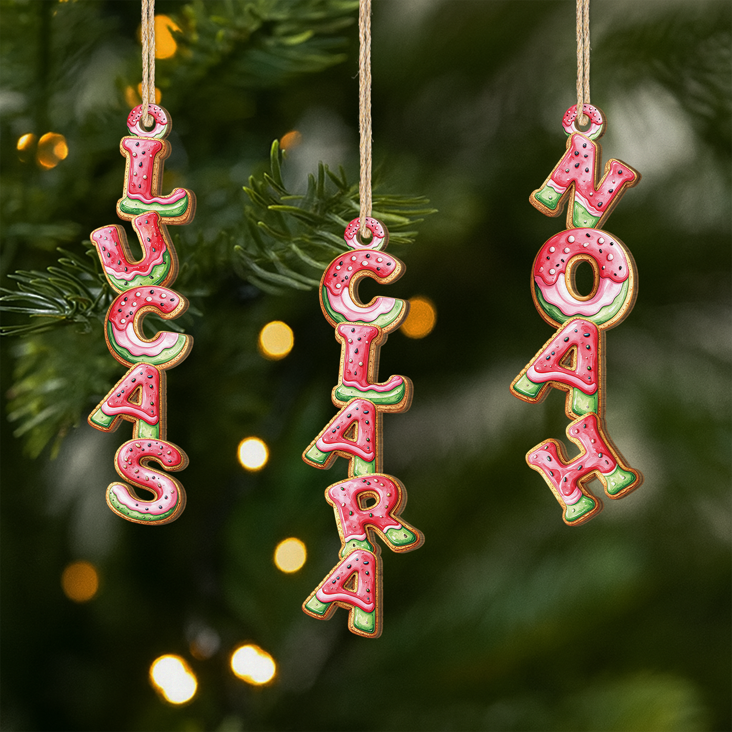 [3D-Druck-Effekt] Buchstaben Wassermelone - Personalisierte 1-Schicht-Holz-Ornamente Weihnachten Mit Namen