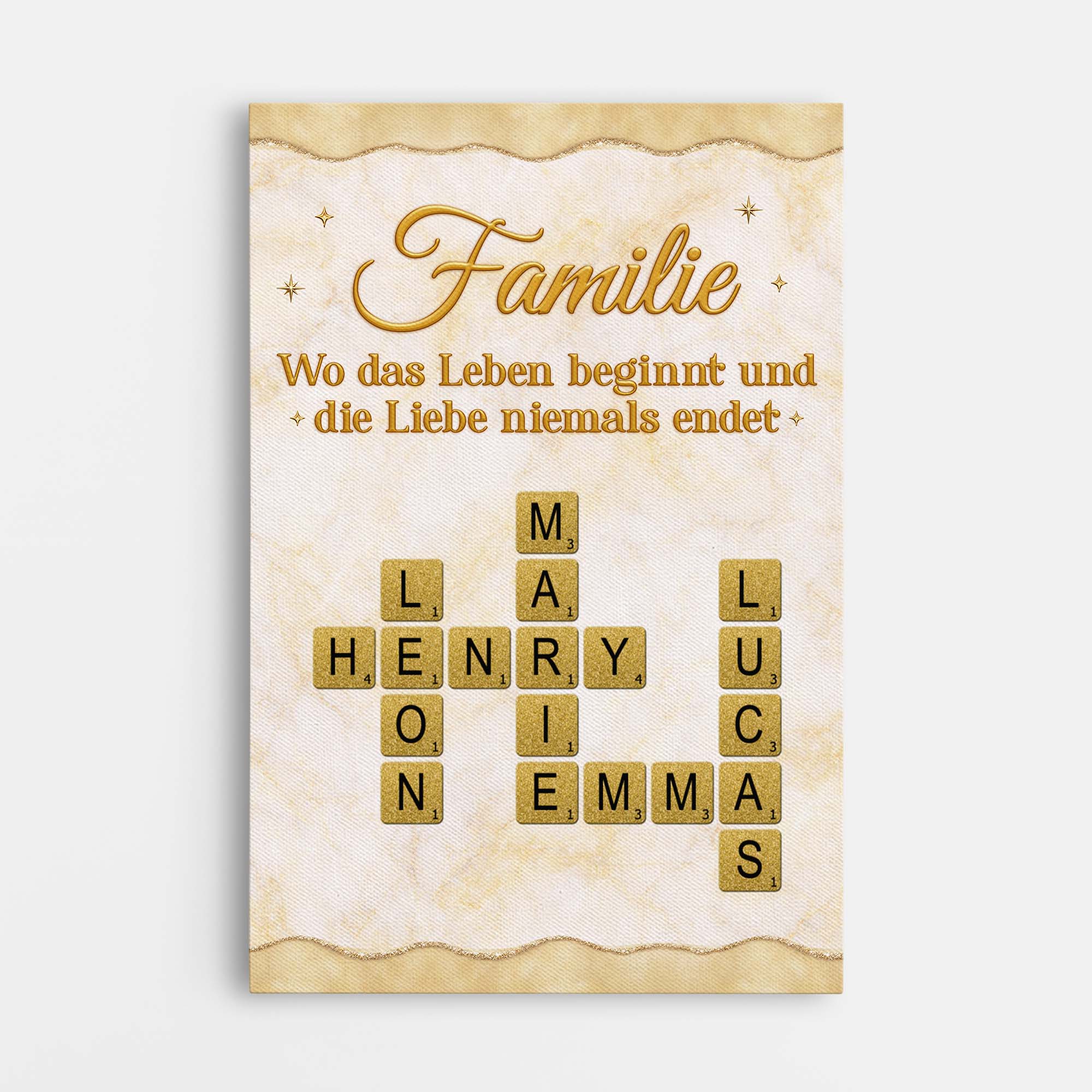 [3D-Druck-Effekt] Familie Wo Das Leben Beginnt Und Die Liebe Niemals Endet - Leinwand Kreuzworträtsel Personalisiert