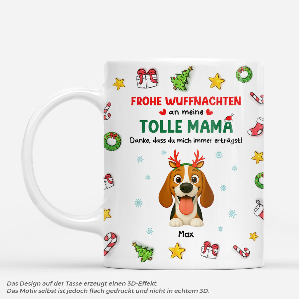 [3D-Druck-Effekt] Frohe Wuffnachten An Meine Tolle Mama - Hunde Weihnachtstasse Personalisiert