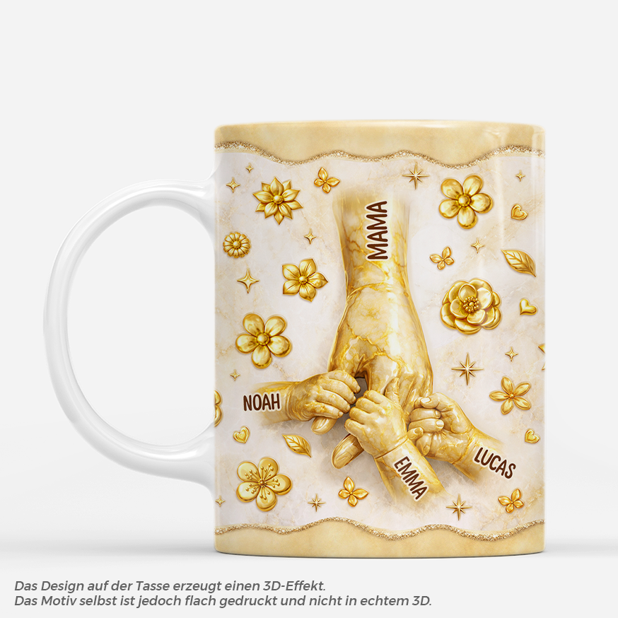 [3D-Druck-Effekt] Hand In Hand - Mama & Oma Tasse Personalisiert Glitzer