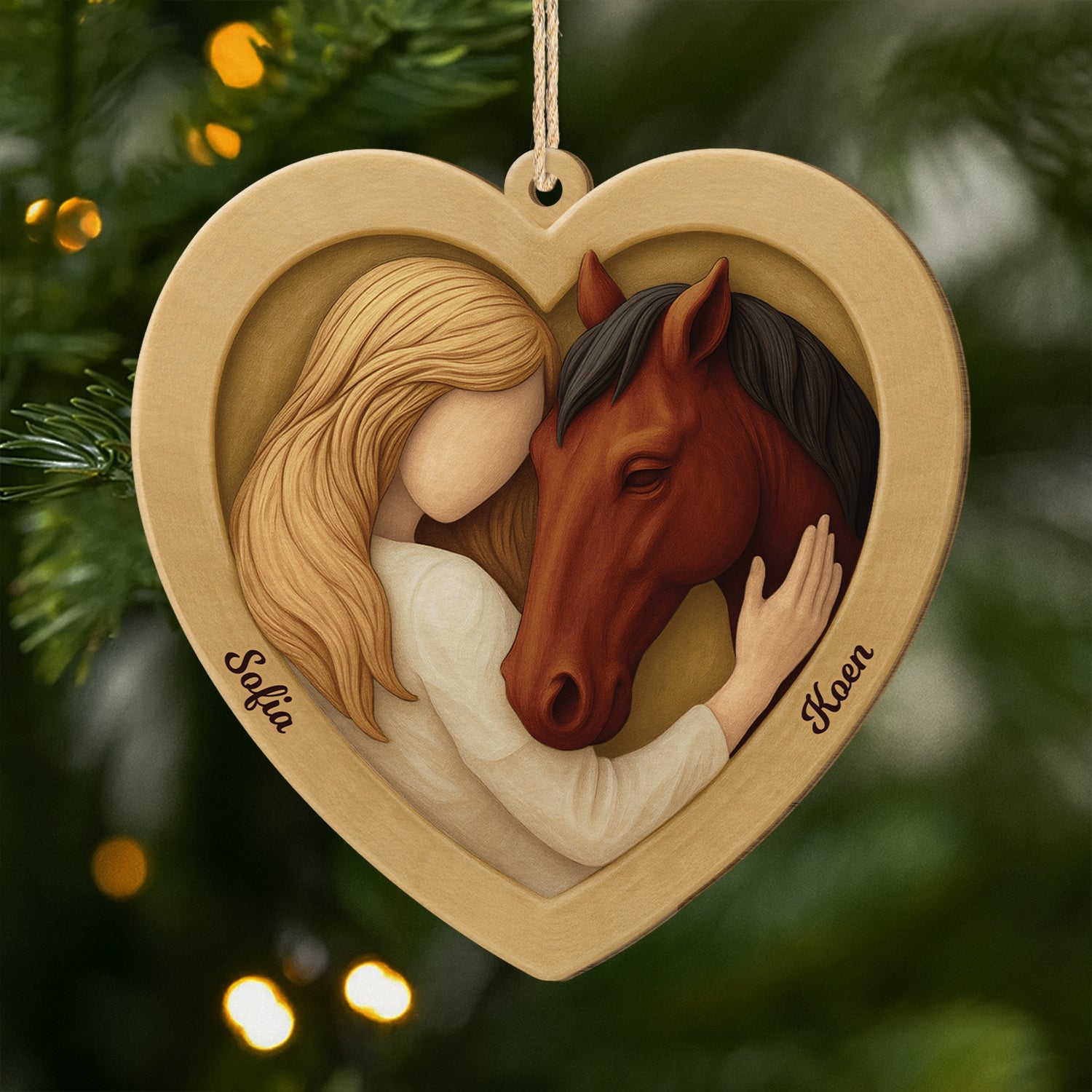 [3D-Druck-Effekt] Mädchen Und Pferd - Personalisierte 1-Schicht-Holz-Ornamente