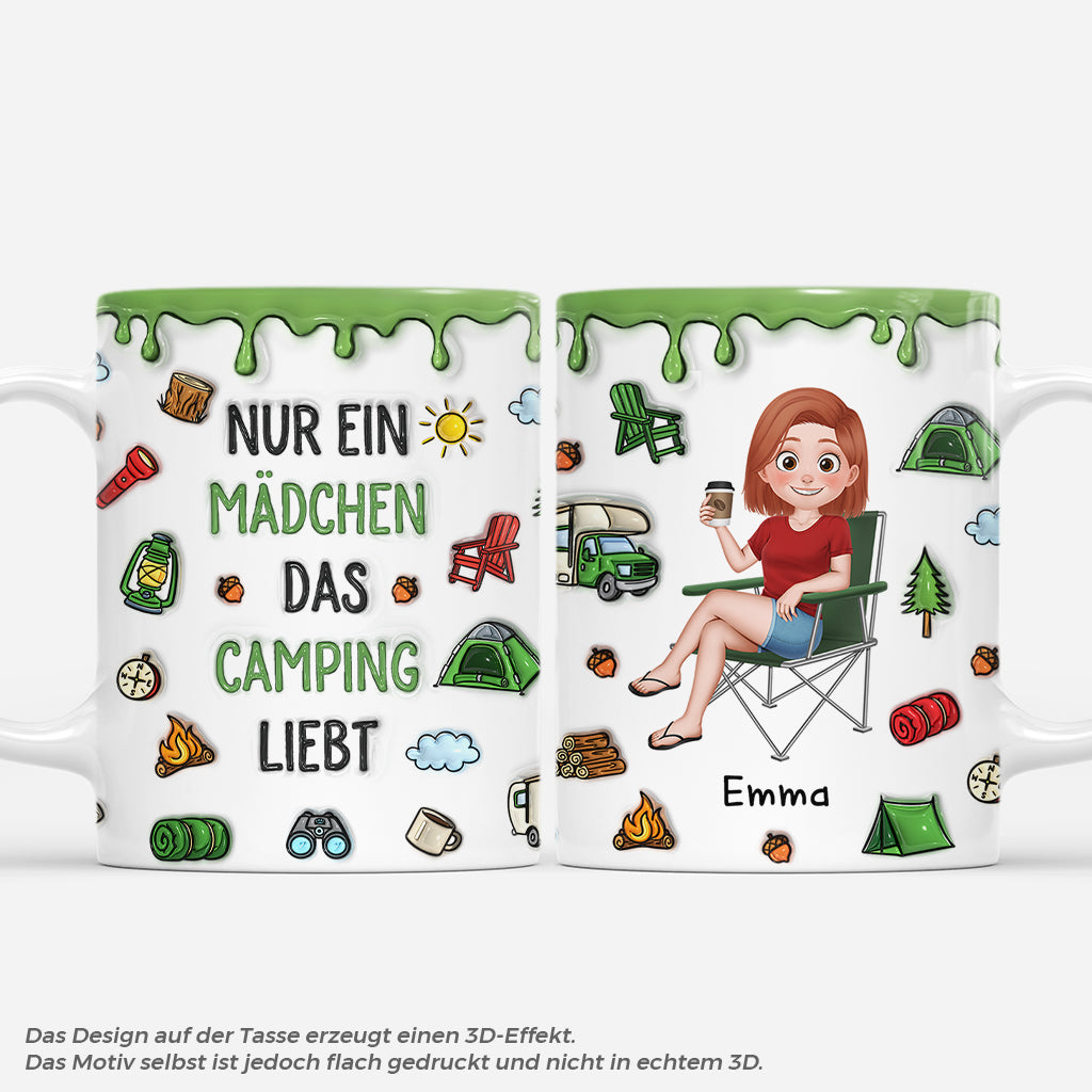 [3D-Druck-Effekt] Nur Ein Mädchen Das Camping Liebt - Personalisierte Tasse
