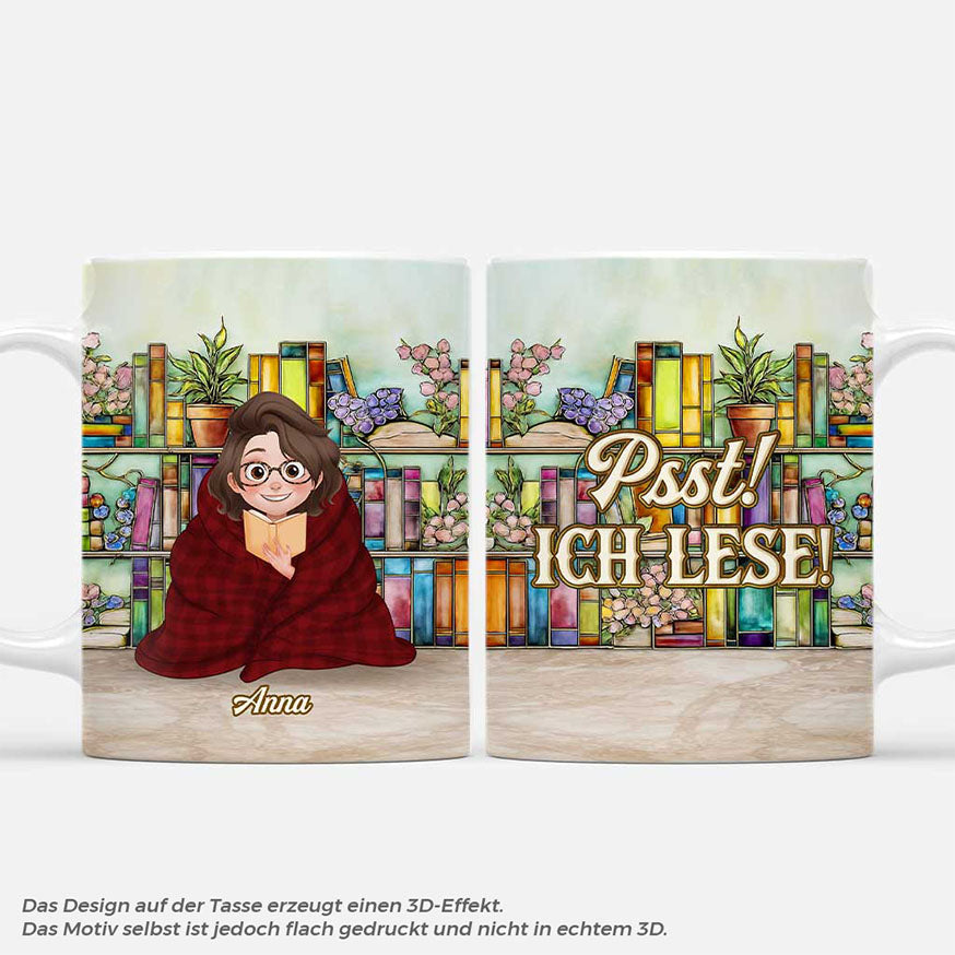 [3D-Druck-Effekt] Psst Ich Lese - Personalisierte Tasse Für Leseratten Frauen & Männer