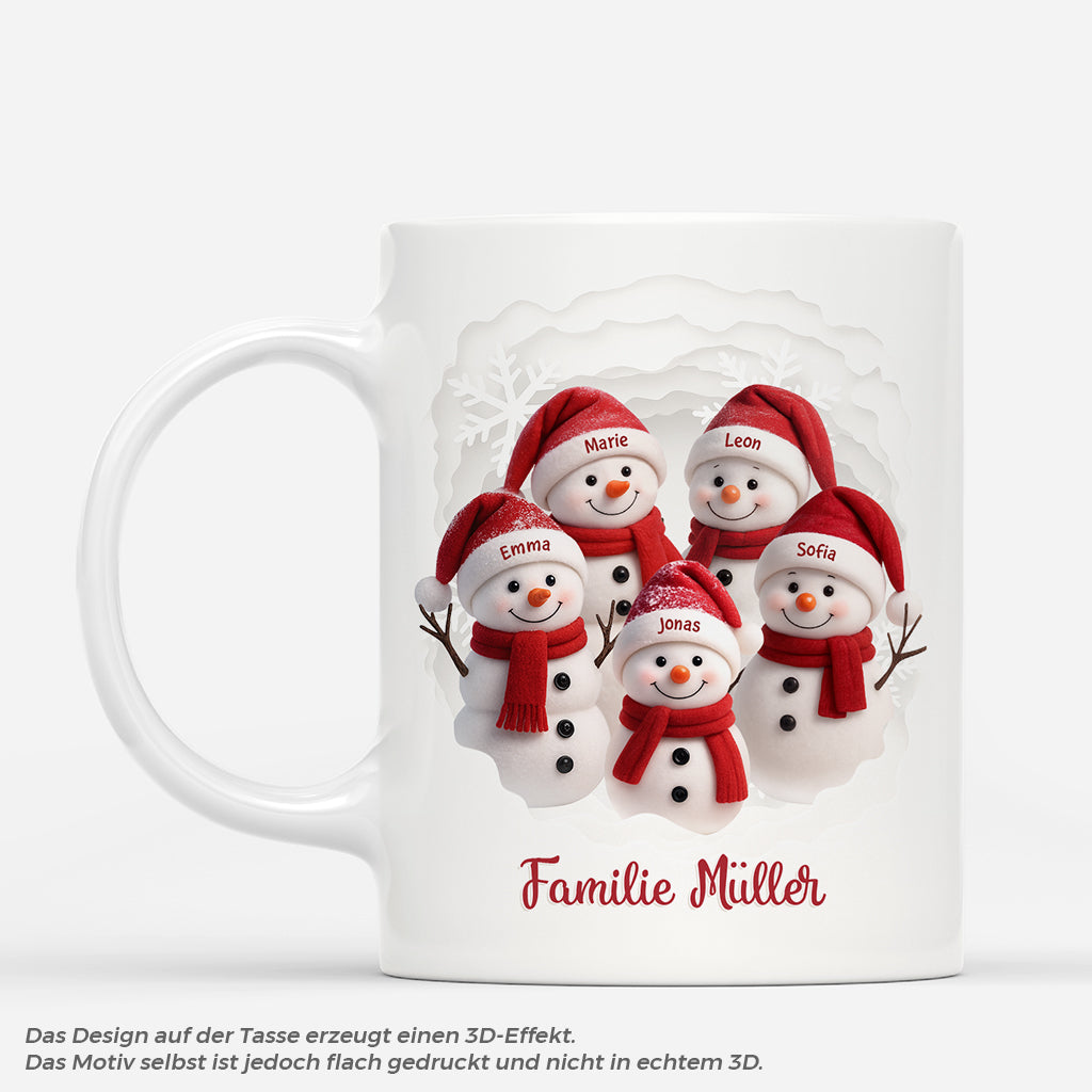 [3D-Druck-Effekt] Schneemann Sschneeflocken - Familie Weihnachtstasse Personalisiert
