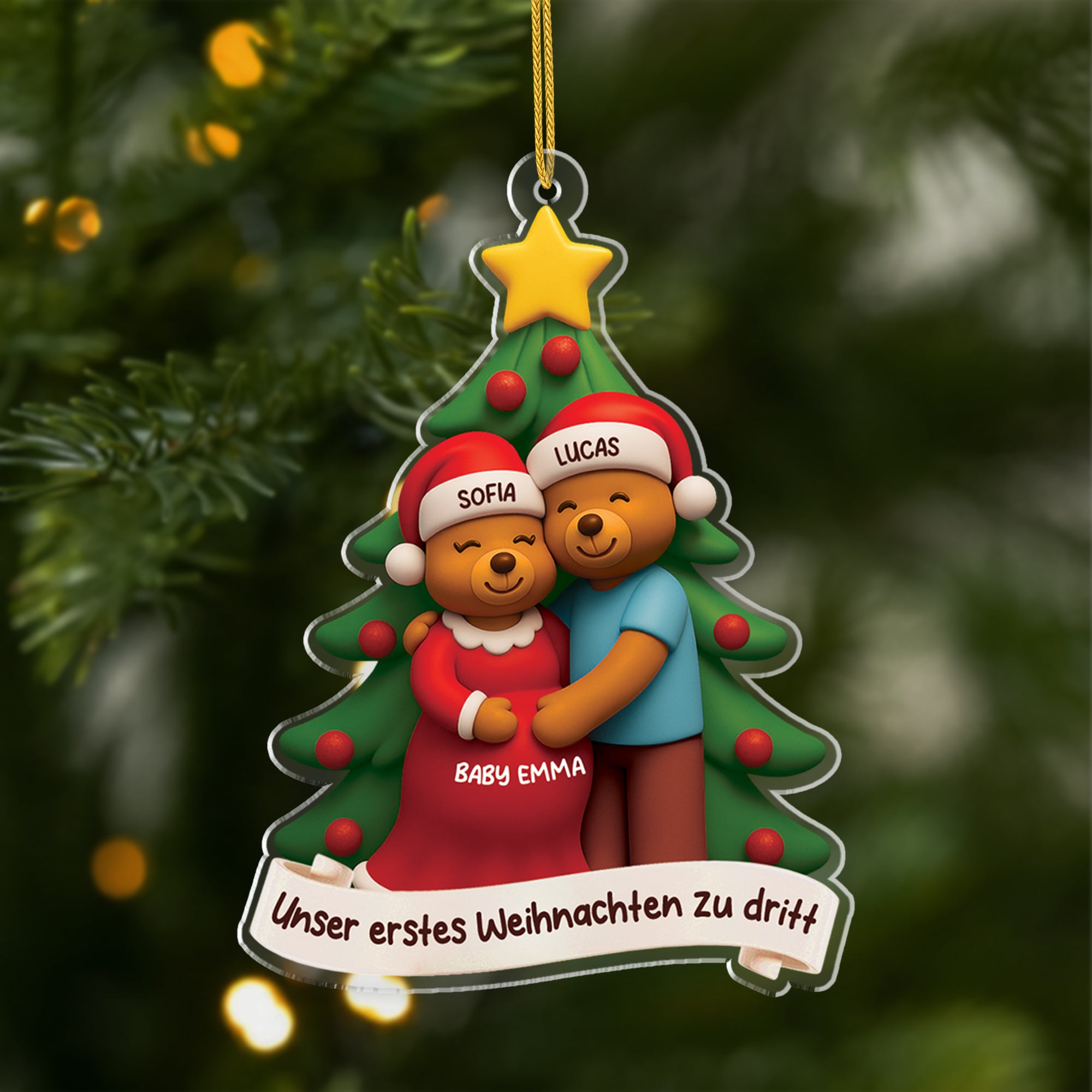 [3D-Druck-Effekt] Wir Sind Schwanger - Acryl Weihnachtsschmuck Personalisiert Werdende Mama Und Papa Bär