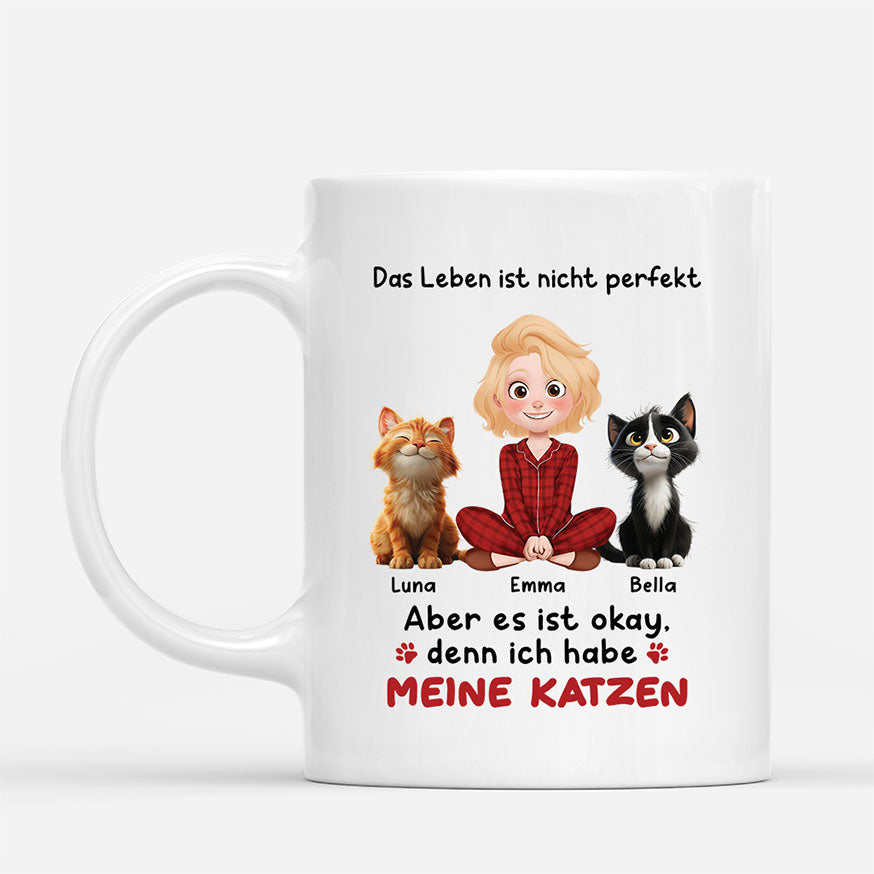 Das Leben Ist Nicht Perfekt Aber Mit Meinen Katzen Ist Es Okay - Katzen Tasse Personalisiert Pfoten