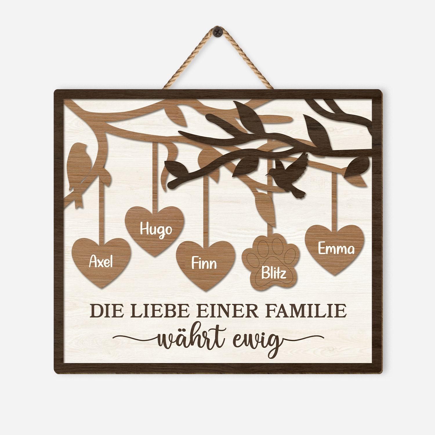 Die Liebe Einer Familie Währt Ewig - Holzschild Familie Personalisiert Mit Hund & Katze