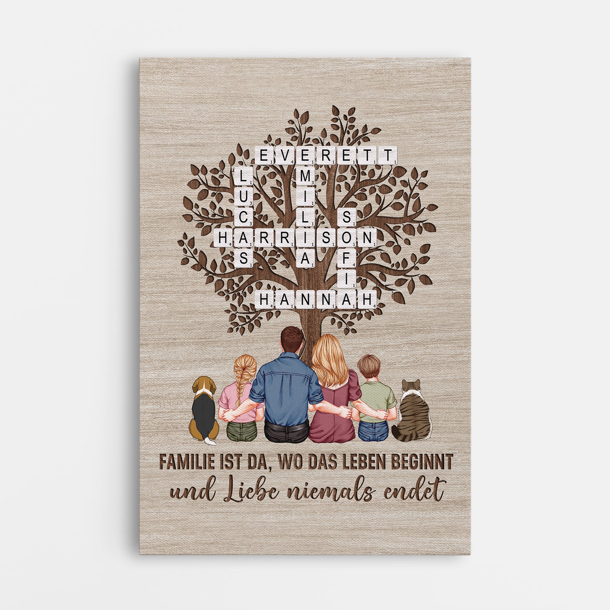 Die Liebe In Der Familie Währt Ewig - Personalisierte Kreuzworträtsel Leinwand Familie Mit Haustier
