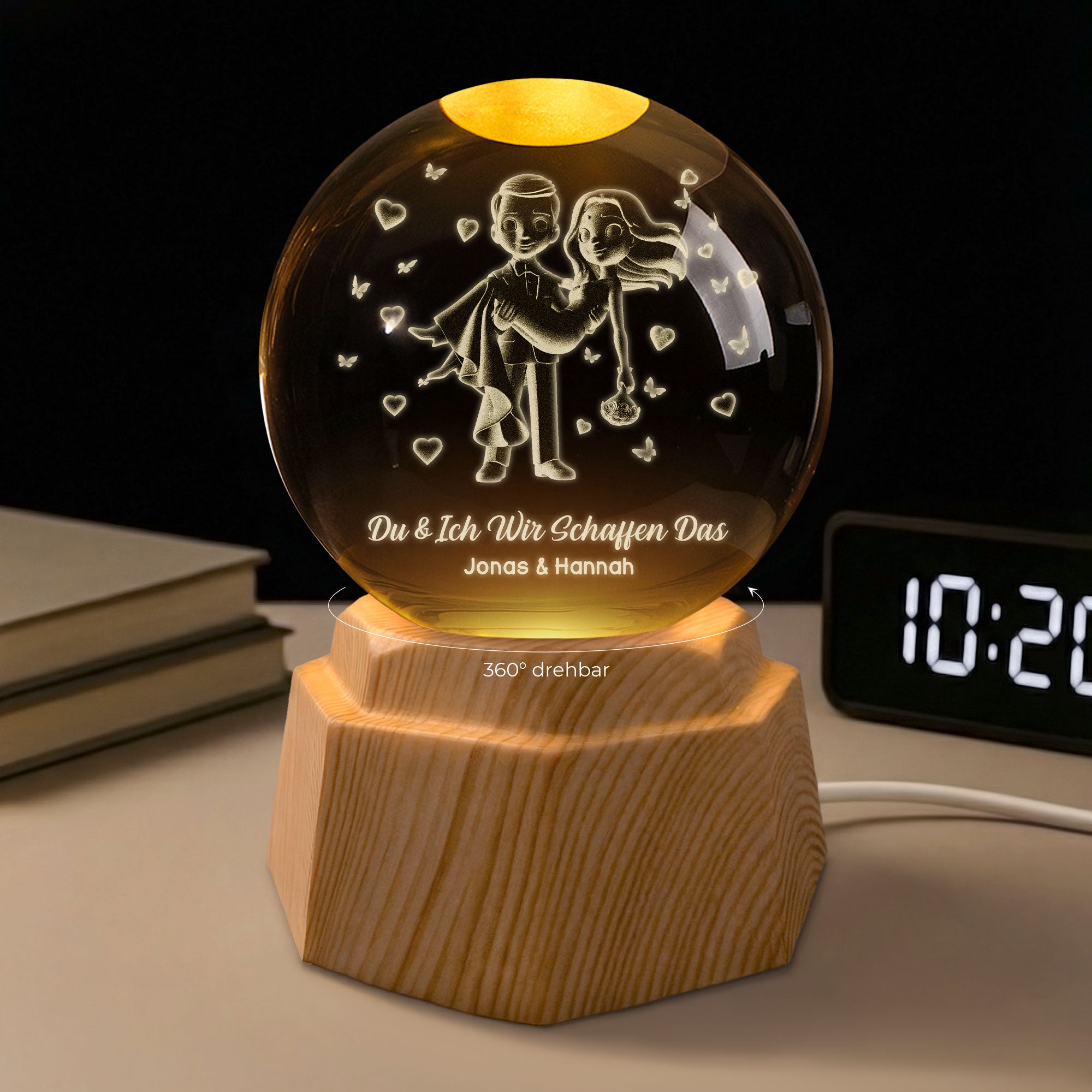 Du & Ich Wir Schaffen Alles - Paar 3D Kristallkugel Personalisiert