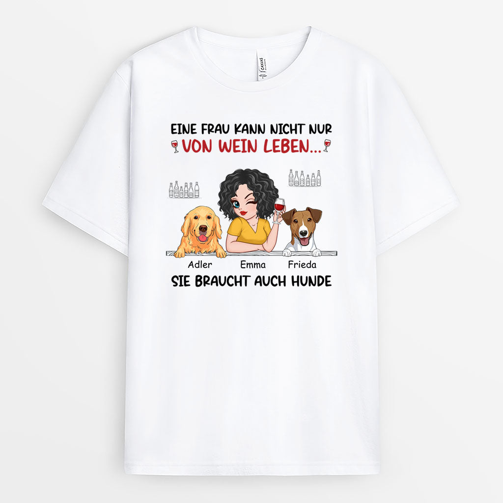 Eine Frau Kann Nicht Nur Von Wein Leben Sie Braucht Auch Hunde - Personalisiertes T-Shirt für Hundeliebhaber