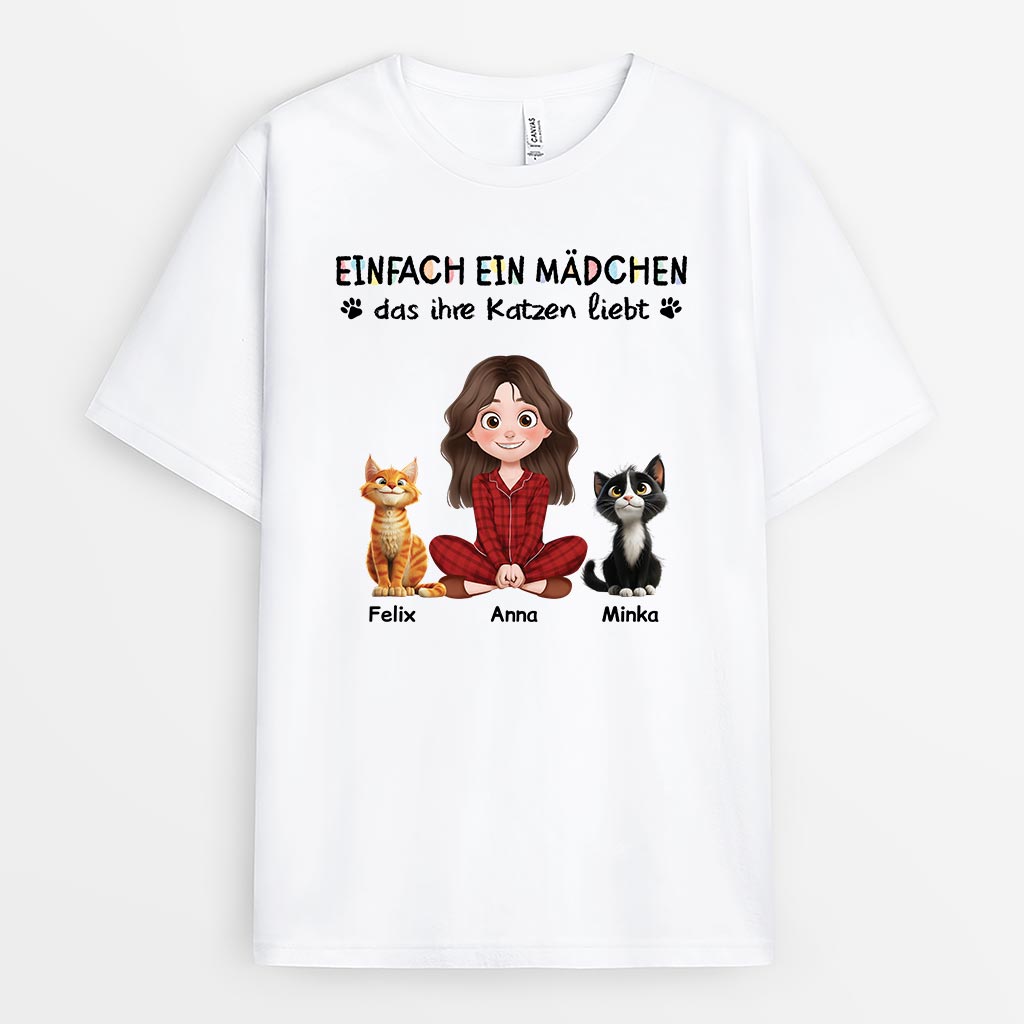 Einfach Ein Mädchen Das Ihre Katzen Liebt - Katzen T-Shirt Personalisiert Cartoon
