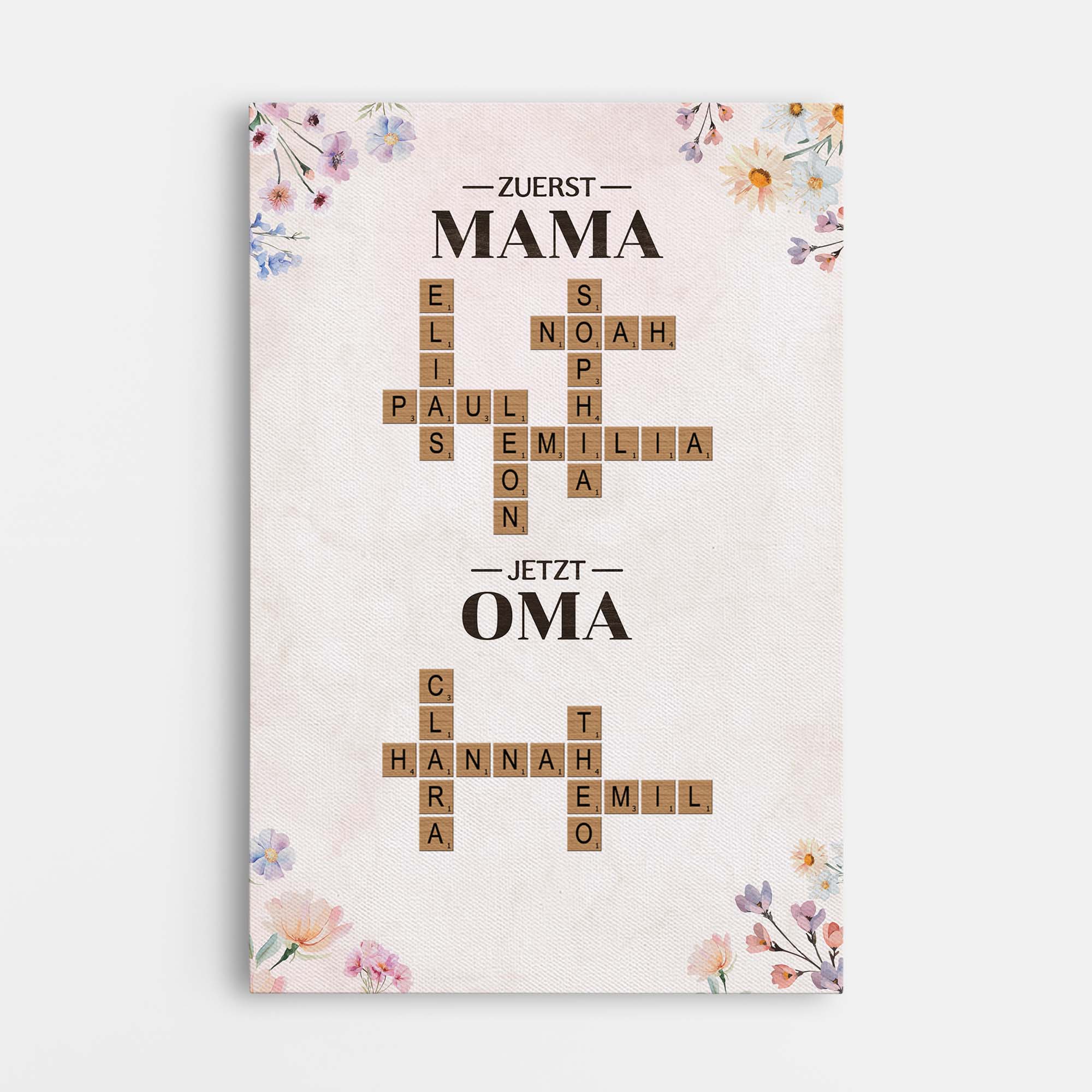 Erst Mama Jetzt Oma - Personalisierte Kreuzworträtsel Leinwand Blumen
