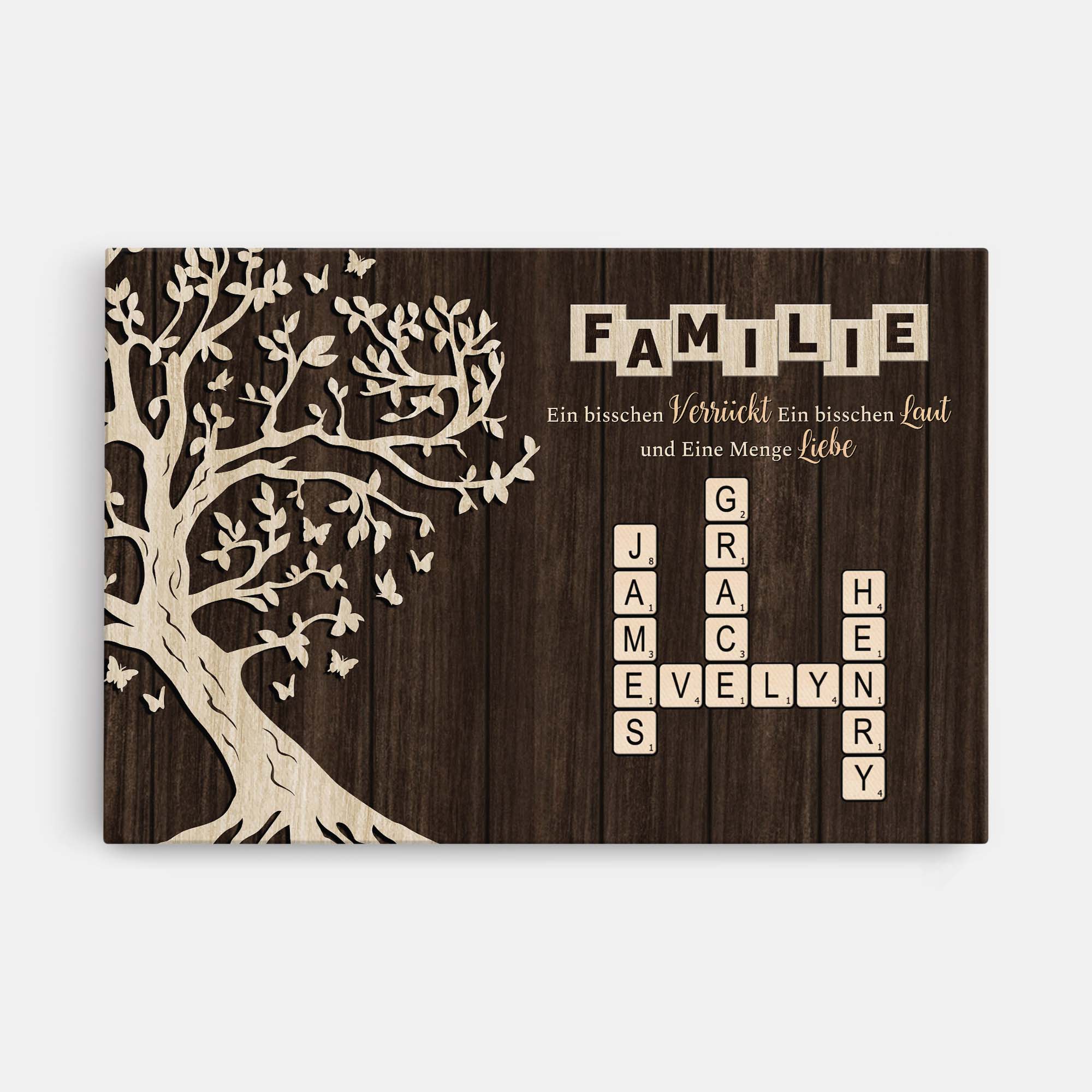 Familie Etwas Verrückt Etwas Laut Und Ganz Viel Liebe - Personalisierte Kreuzworträtsel Leinwand Baum