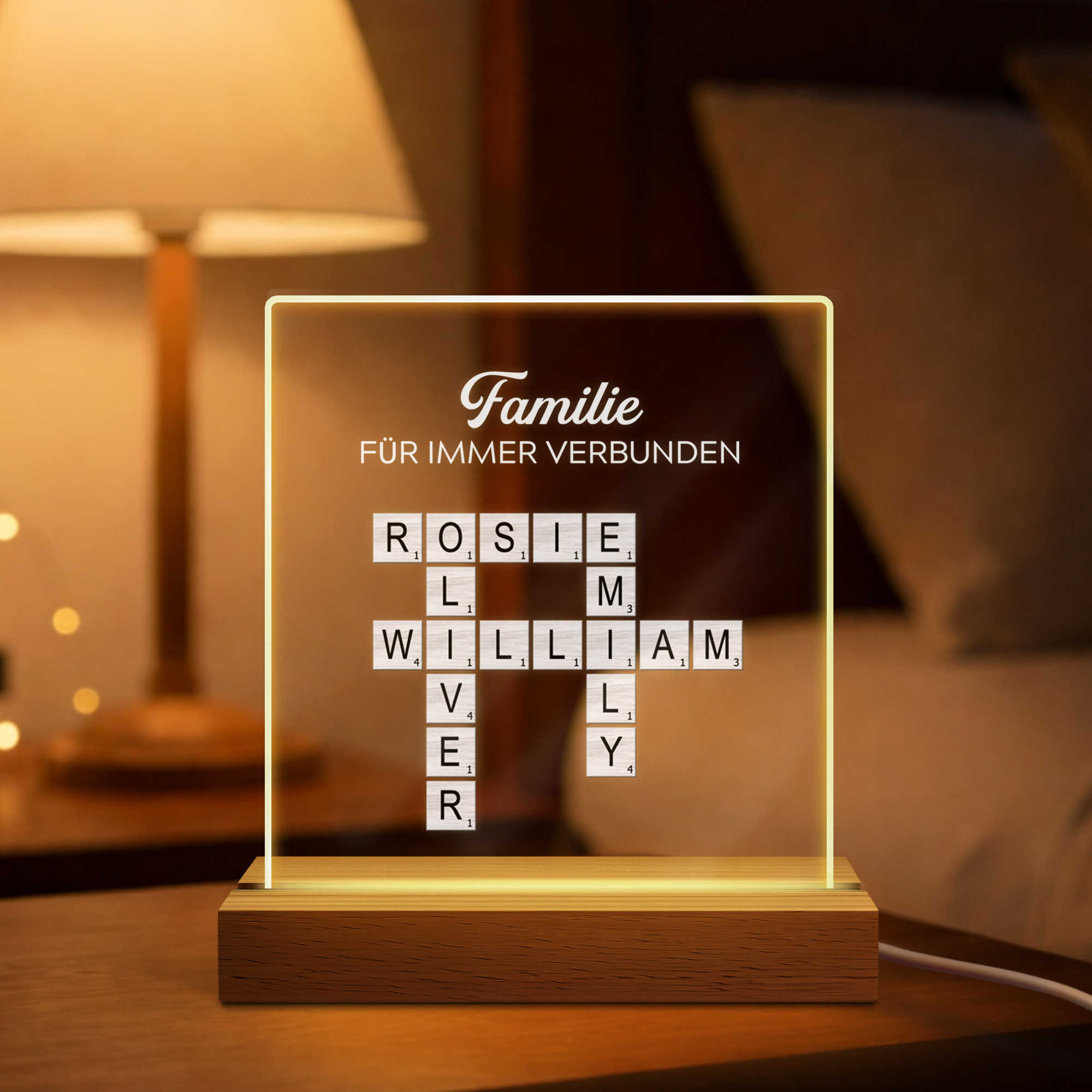 Familie Für Immer Verbunden - Personalisiertes Kreuzworträtsel Nachtlicht
