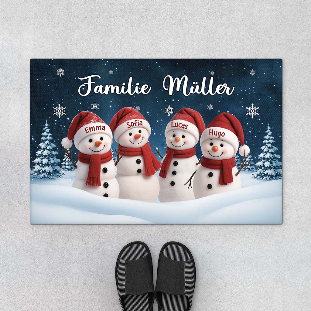 Familie Schneemann - Weihnachten Fußmatte Personalisiert Familie