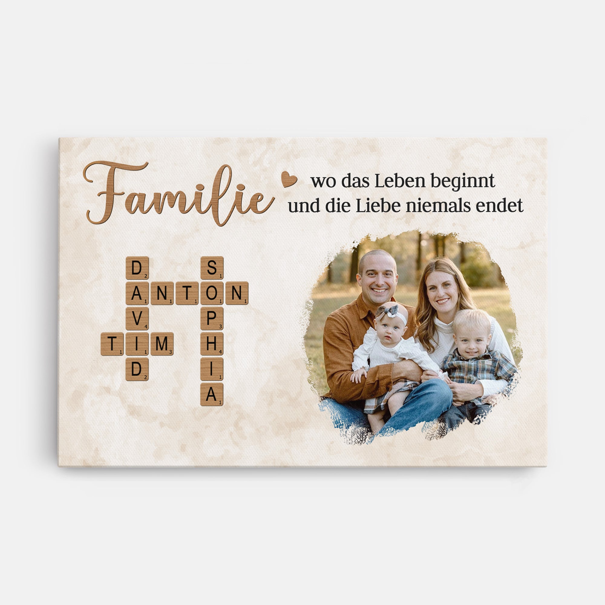 Familie Wo Leben Beginnt & Liebe Niemals Endet - Leinwand Kreuzworträtsel Personalisiert Foto