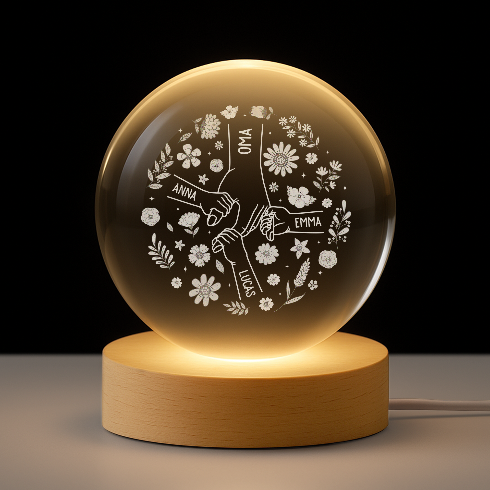 Hand In Hand Blumen - Kristallkugel Personalisiert Oma/Mama