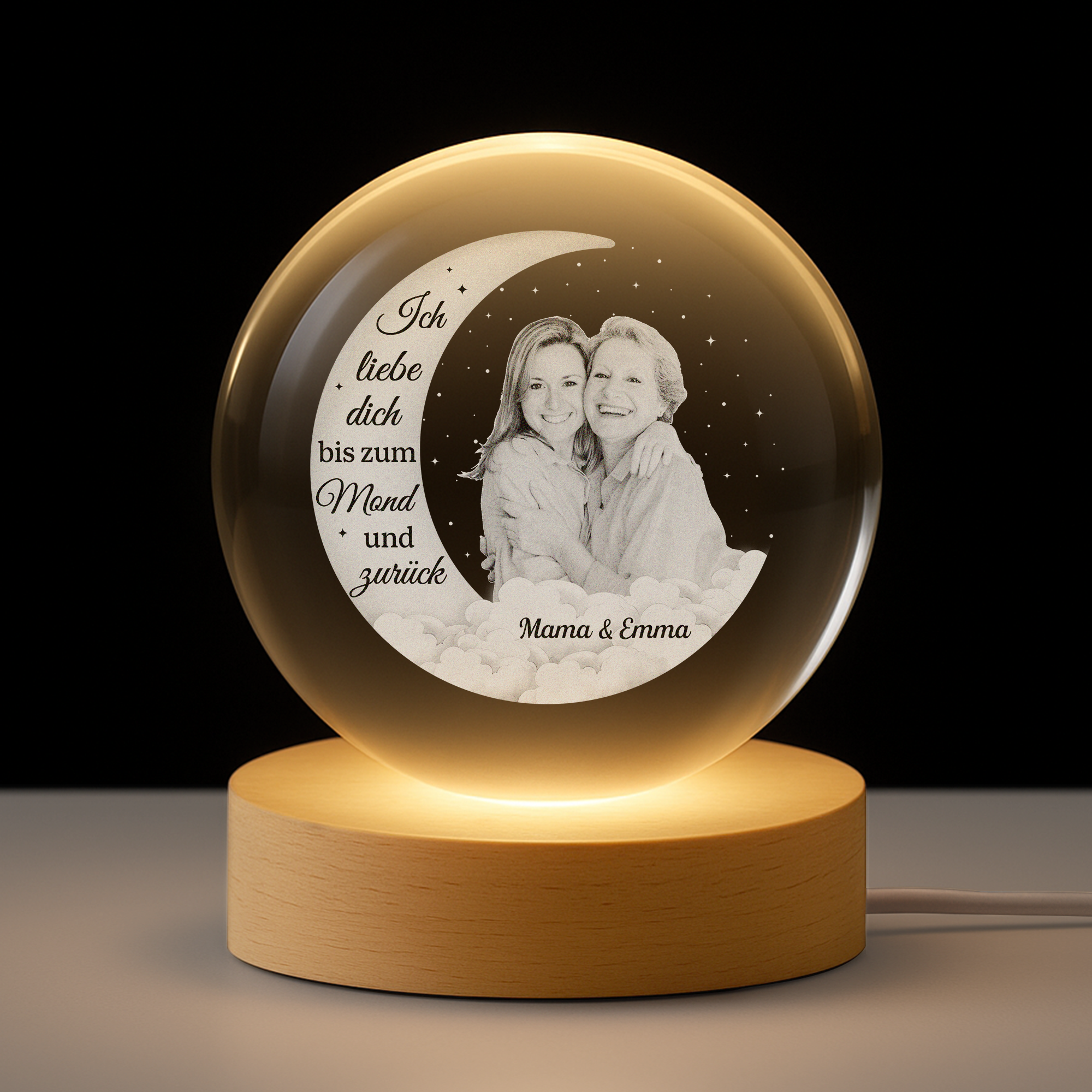 Ich Liebe Dich Bis Zum Mond Und Zurück - Kristallkugel Personalisiert Foto Mama/Papa