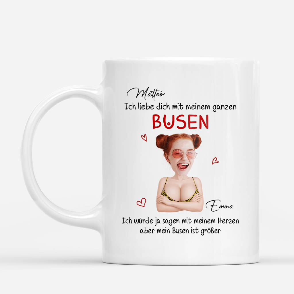 Ich Liebe Dich Mit Meinem Ganzen Busen - Personalisierte Tasse Mit Foto Paar