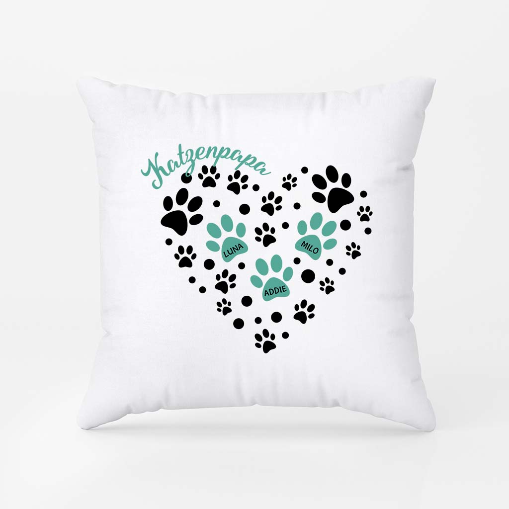 Katzenpapa Herz Pfoten - Personalisierte Kissen Mit Namen Katzen