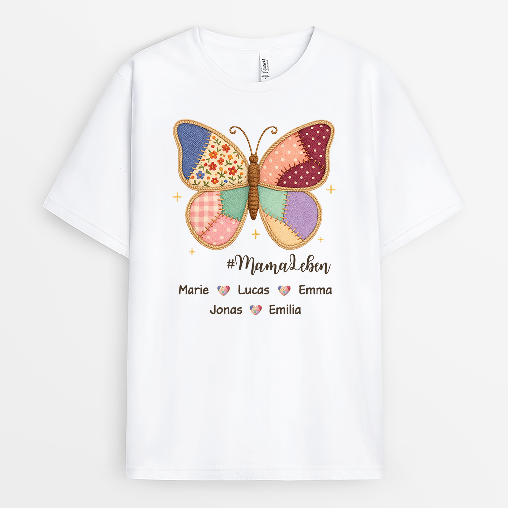 Liebe #OmaLeben Schmetterling Patchwork - Oma & Mama T Shirt Personalisiert