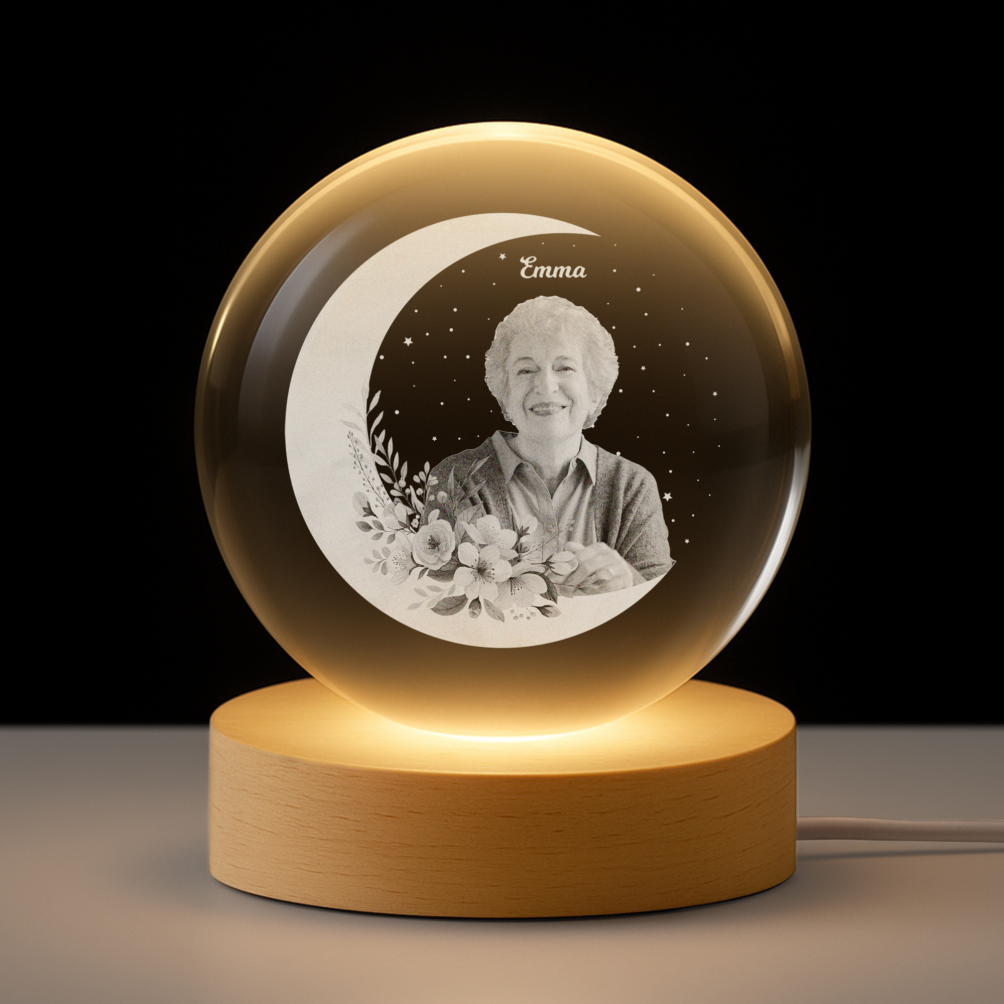 - Hochwertige Materialien: Gefertigt aus erstklassigem K9-Kristall mit außergewöhnlicher Klarheit. Der robuste Holzsockel enthält eine sanfte LED-Beleuchtung und ein USB-Kabel für einfache Stromversorgung.