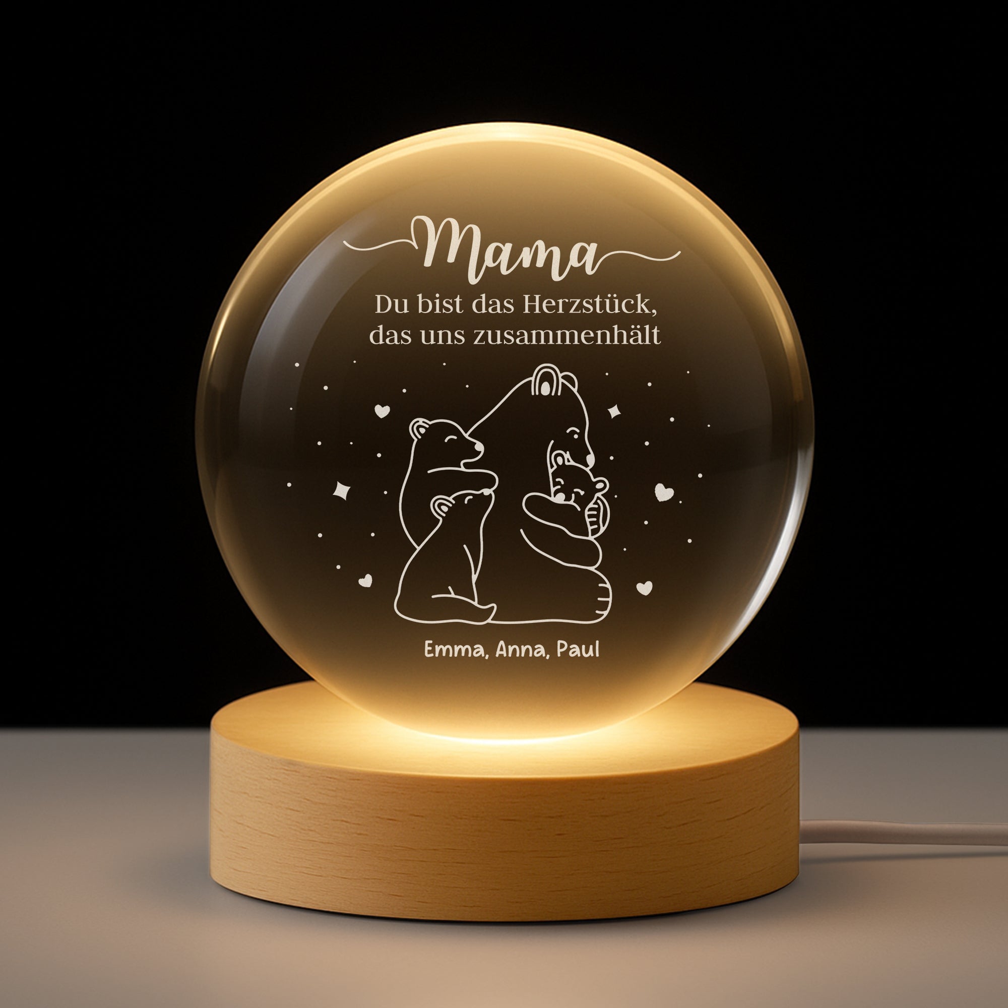 - Geschenk mit Bedeutung: Die Kristallkugel auf einem Holzsockel verbreitet ein sanftes, warmes Licht – perfekt als Dekoration im Schlafzimmer, Wohnzimmer oder Büro. Ein zeitloses Stück und ein emotionales, persönliches Geschenk.
