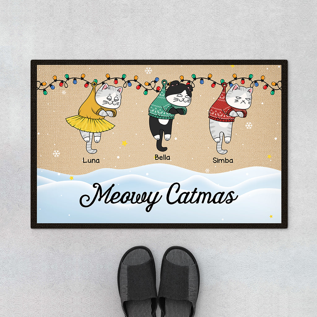 Meowy Catmas Weihnachten - Fußmatte Katzen Personalisiert