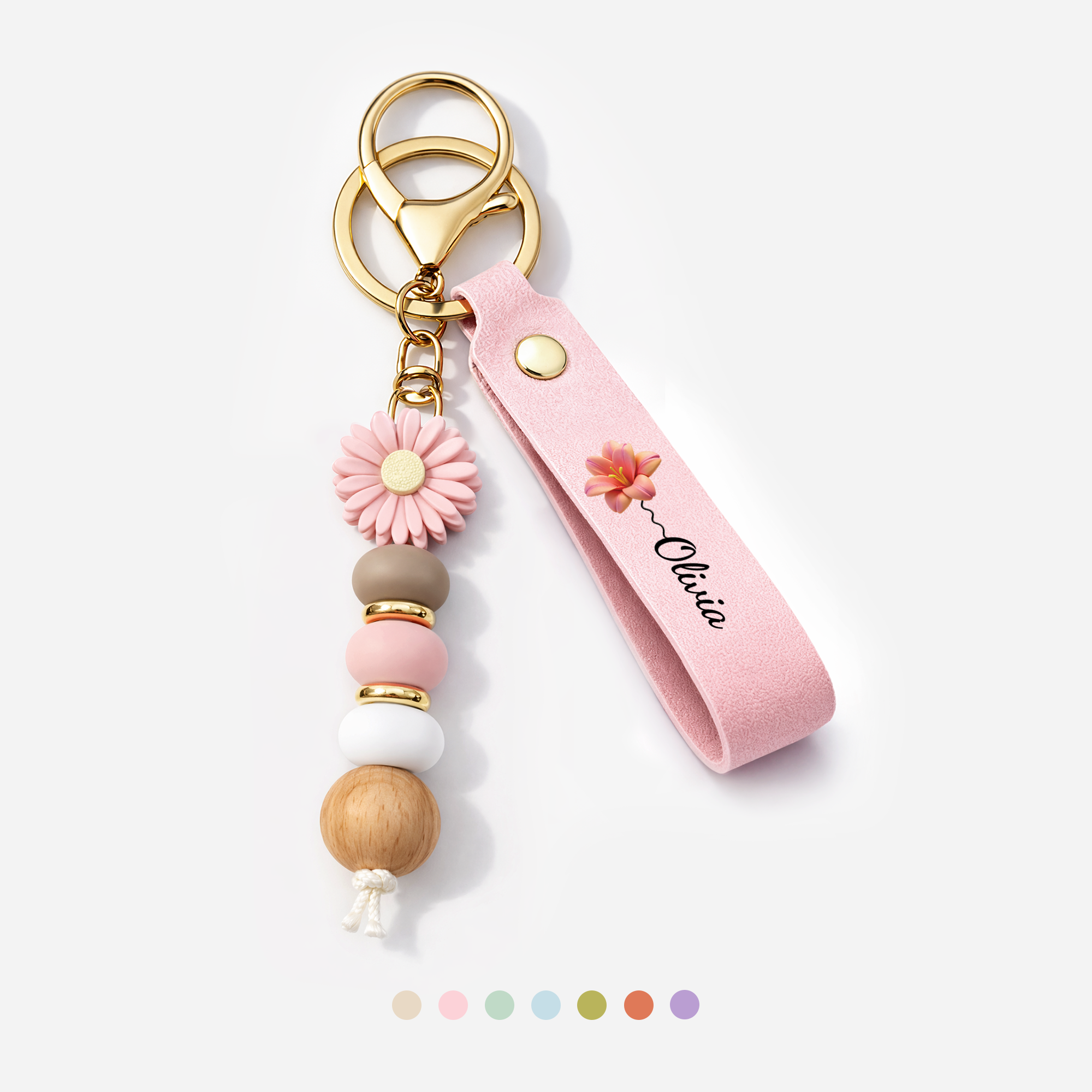 Name Und Blume - UV Druck Daisy Schlüsselanhänger Personalisiert Perlen Frauen