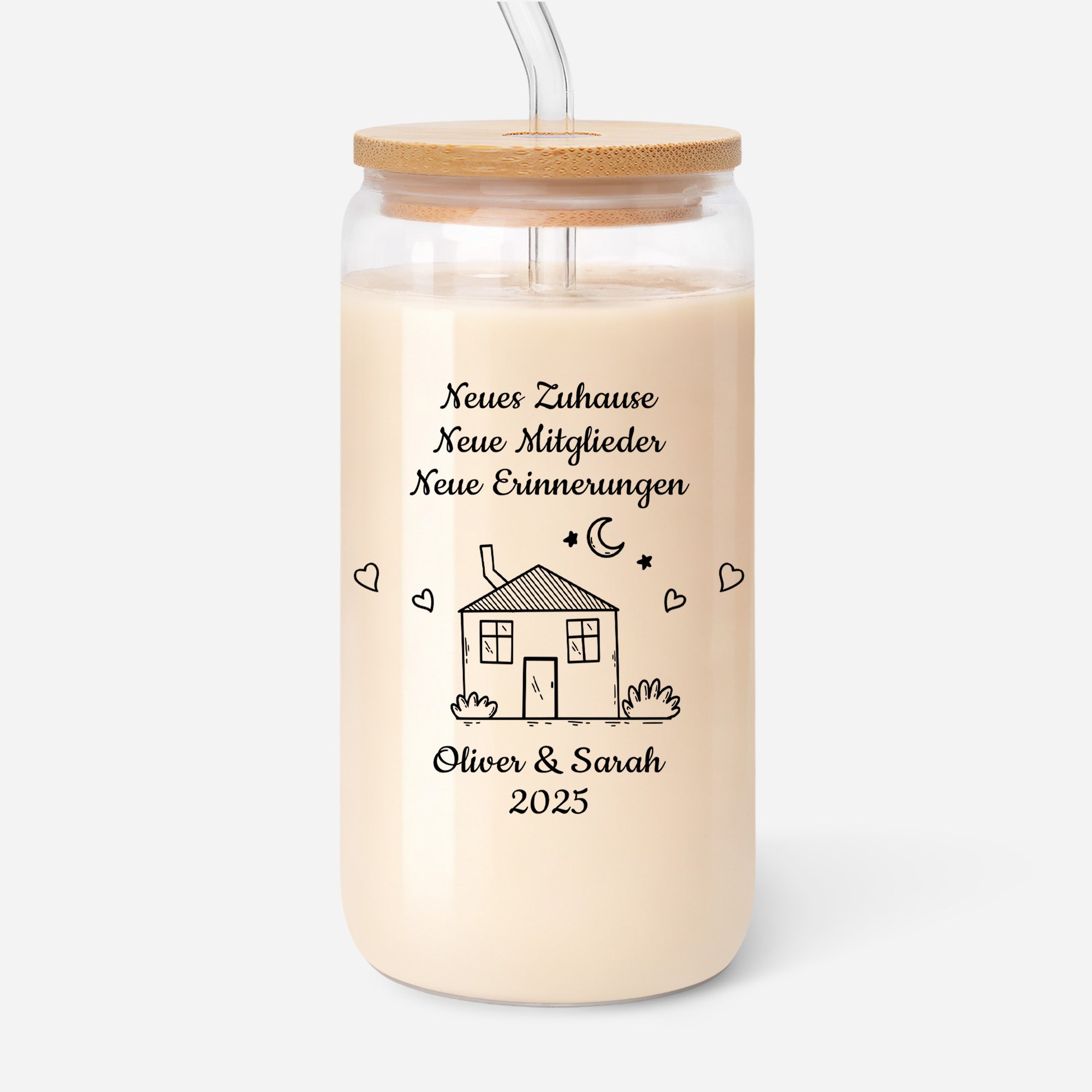 Neues Zuhause Neue Mitglieder Neue Erinnerungen - Glas Mit Deckel Und Strohhalm Personalisiert Paar Zum Einzug
