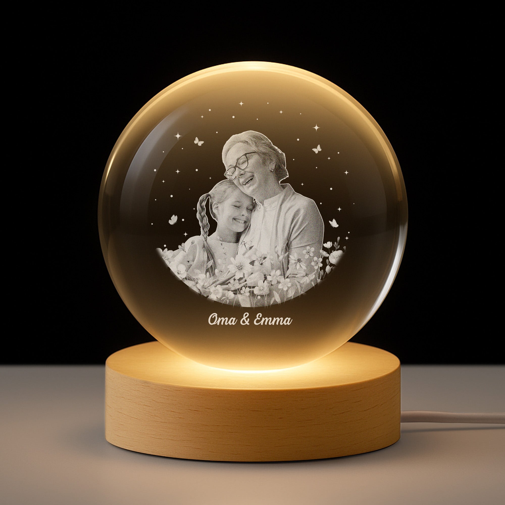 Oma & Enkelkinder Blumen - Kristallkugel Personalisiert Foto Oma/Mama