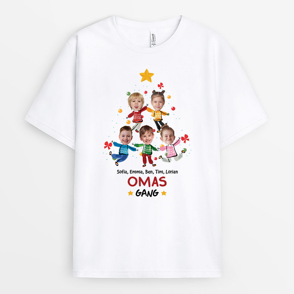 Omas Bande Und Weihnachtsbaum - Personalisiertes T-Shirt mit Gesicht für Omas