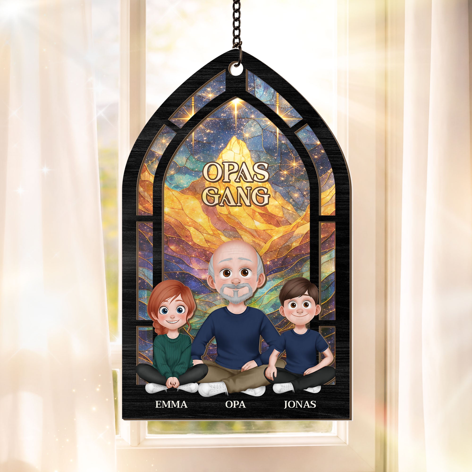 Opas Gang Cartoon - Acryl Sonnenfänger Personalisiert Opa/Oma