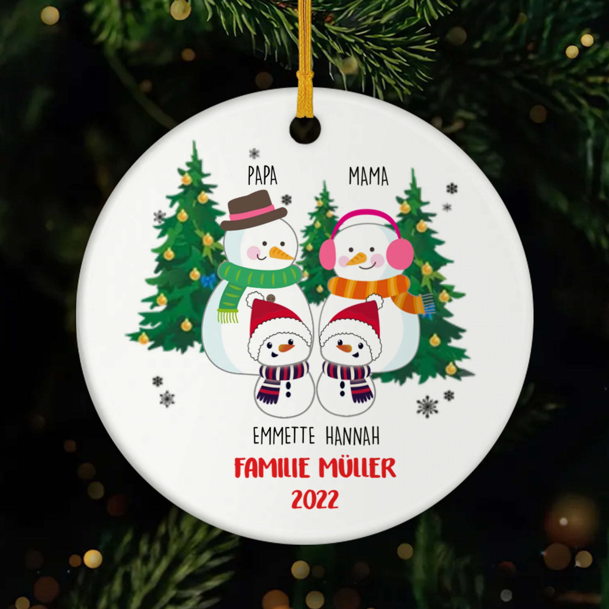 Personalisierter Christbaumschmuck Familie – Die Familie Schneemann