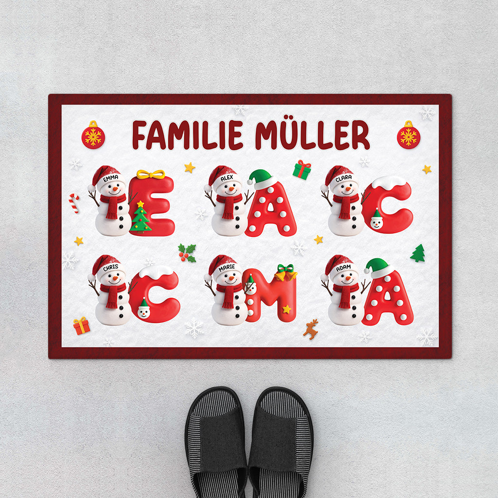 Schneemann - Weihnachtes Fußmatte Personalisiert Familie