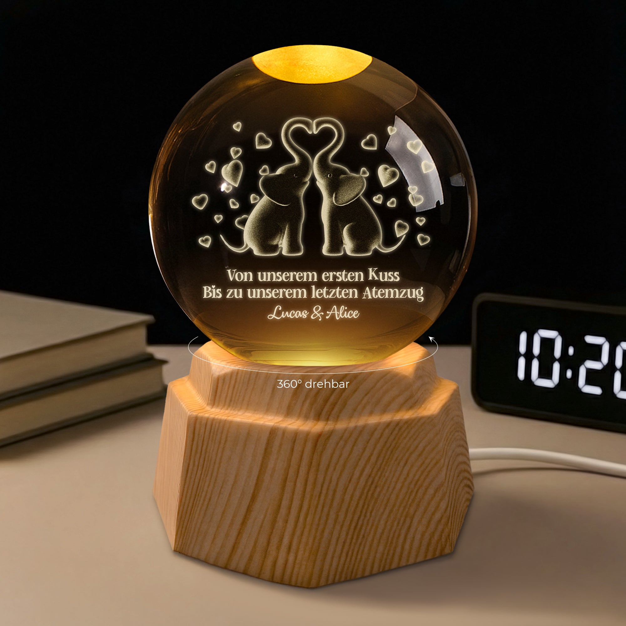 Vom Ersten Kuss Bis Zum Letzten Atemzug - 3D Kristallkugel Personalisiert Elefantenpaare