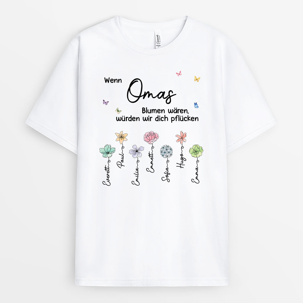 Wenn Oma Blumen Wären Würden Wir Dich Pflücken - Mama & Oma T Shirt Personalisiert Garten