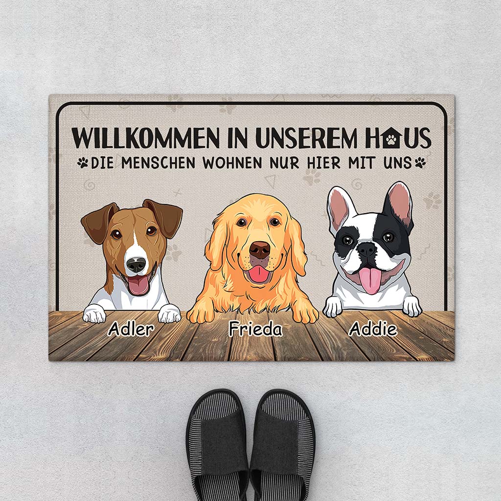 Willkommen In Unserem Haus Die Menschen Wohnen Nur Hier Mit Uns - Personalisierte Fußmatte für Hundeliebhaber