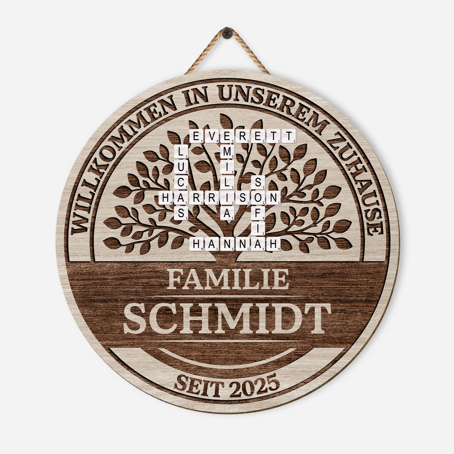 Willkommen In Unserem Zuhause - Holzschild Kreuzworträtsel Personalisiert
