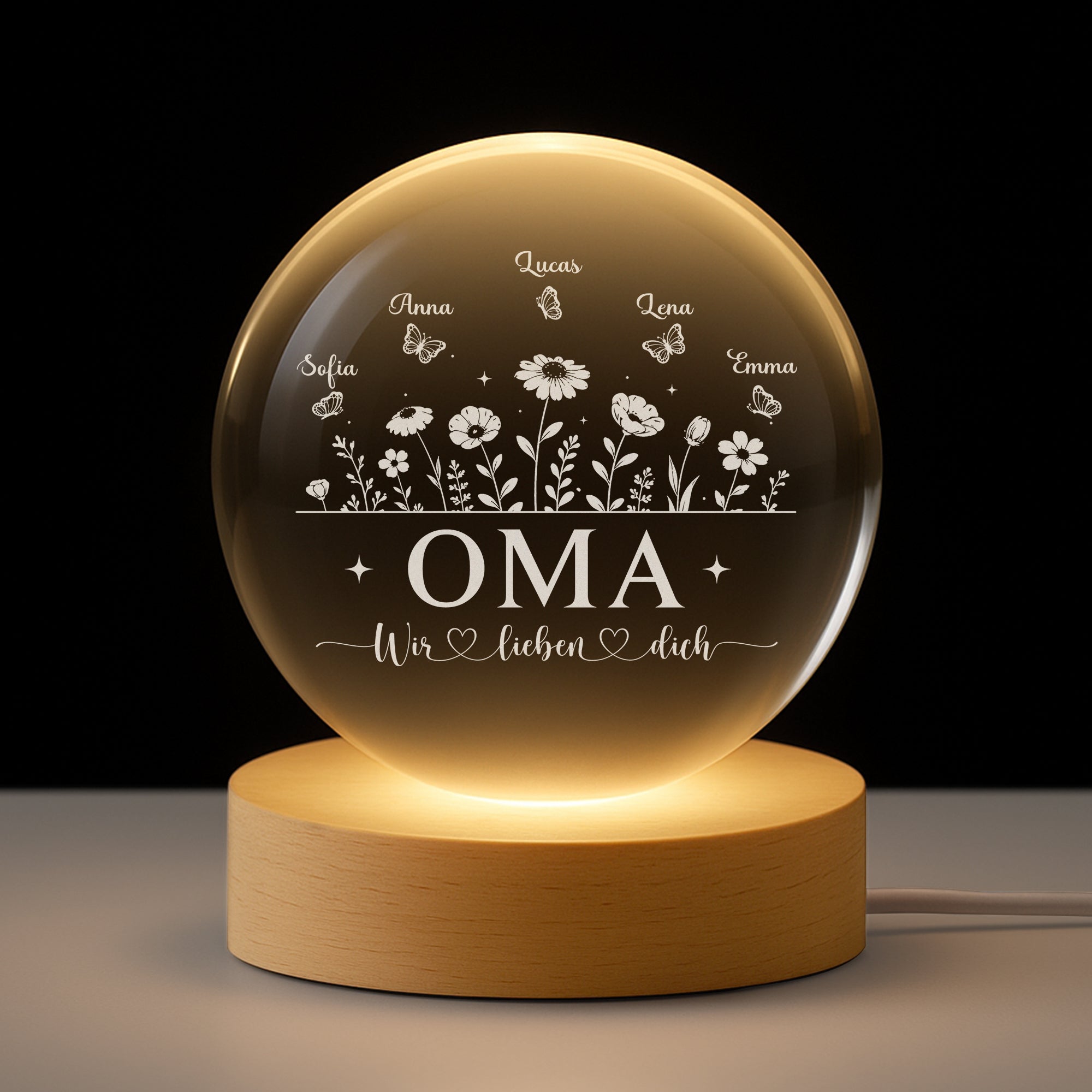 Wir Lieben Dich Blumen & Schmetterlinge - Kristallkugel Personalisiert Mama/Oma