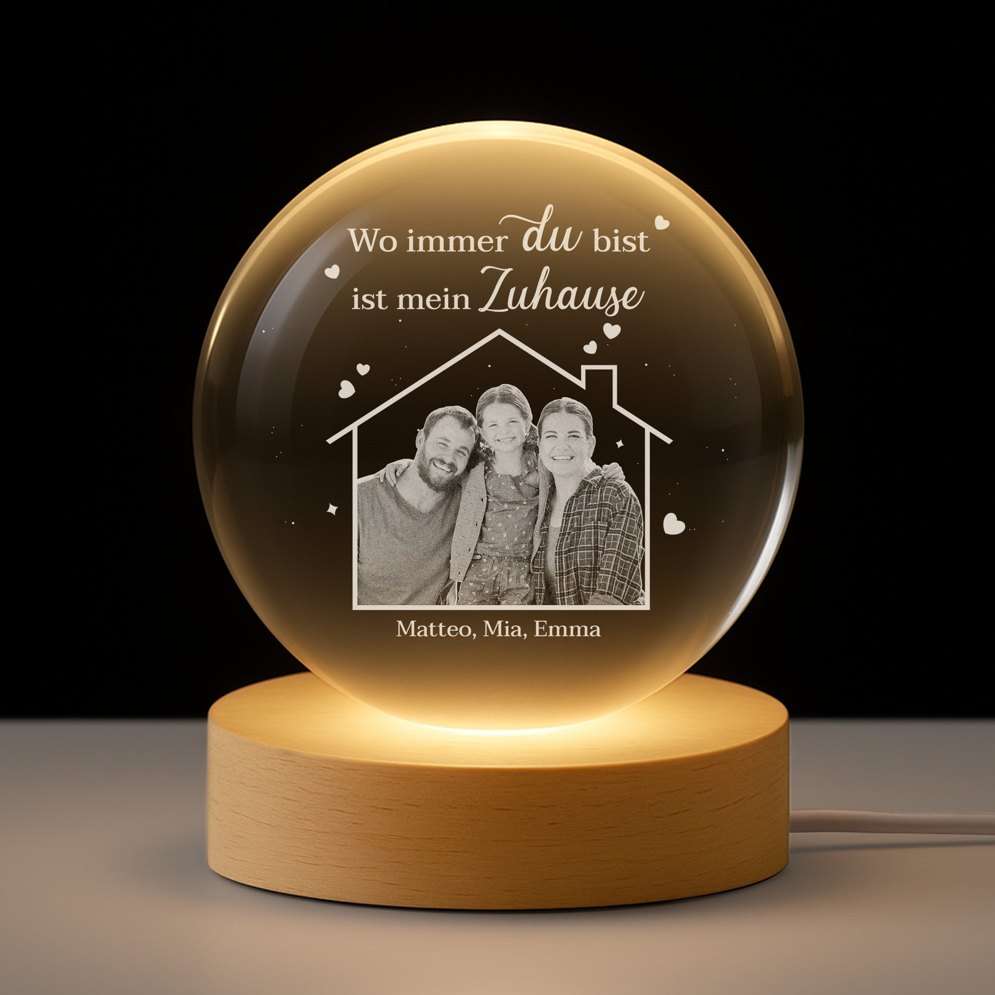 - Geschenk mit Bedeutung: Die Kristallkugel auf einem Holzsockel verbreitet ein sanftes, warmes Licht – perfekt als Dekoration im Schlafzimmer, Wohnzimmer oder Büro. Ein zeitloses Stück und ein emotionales, persönliches Geschenk.